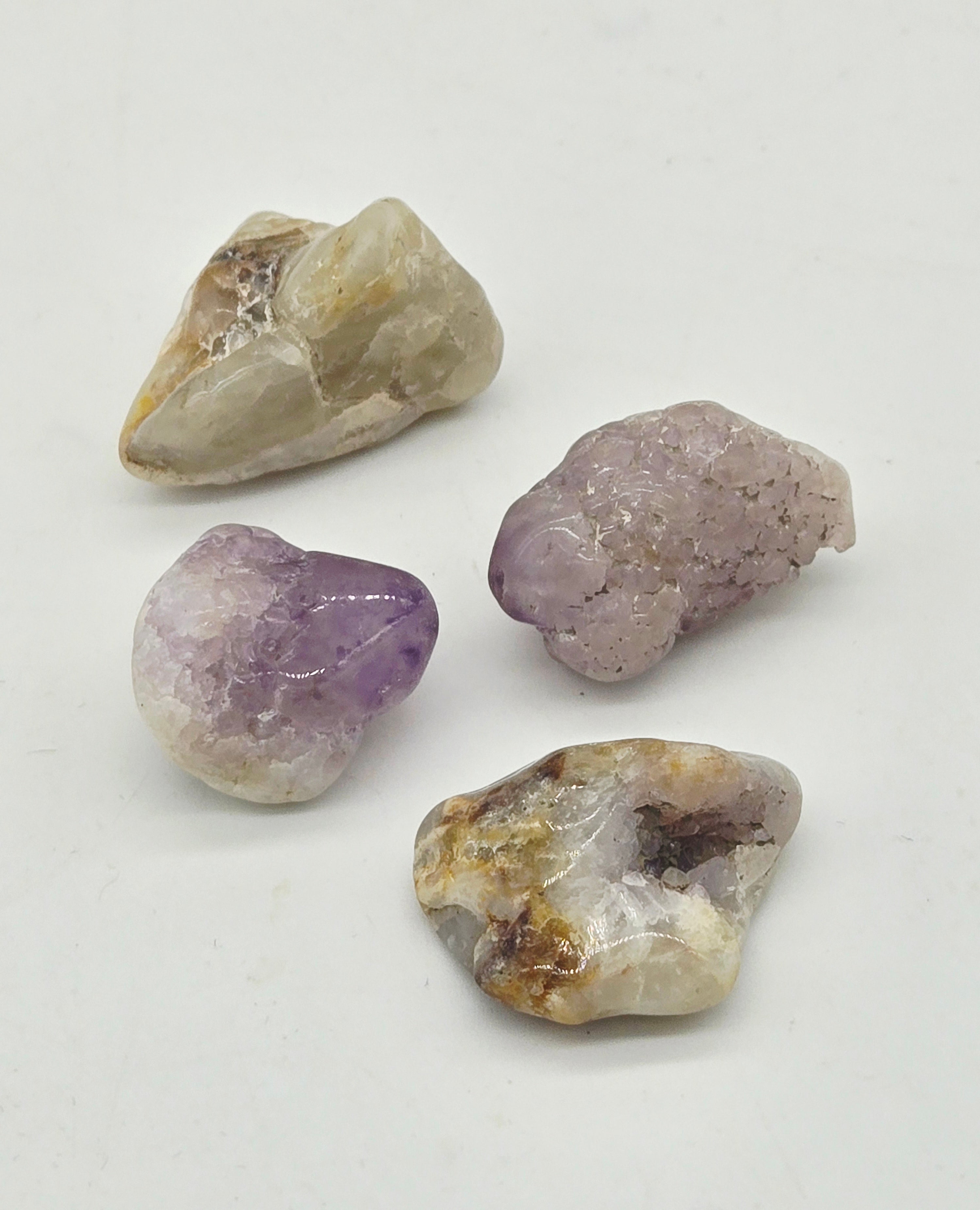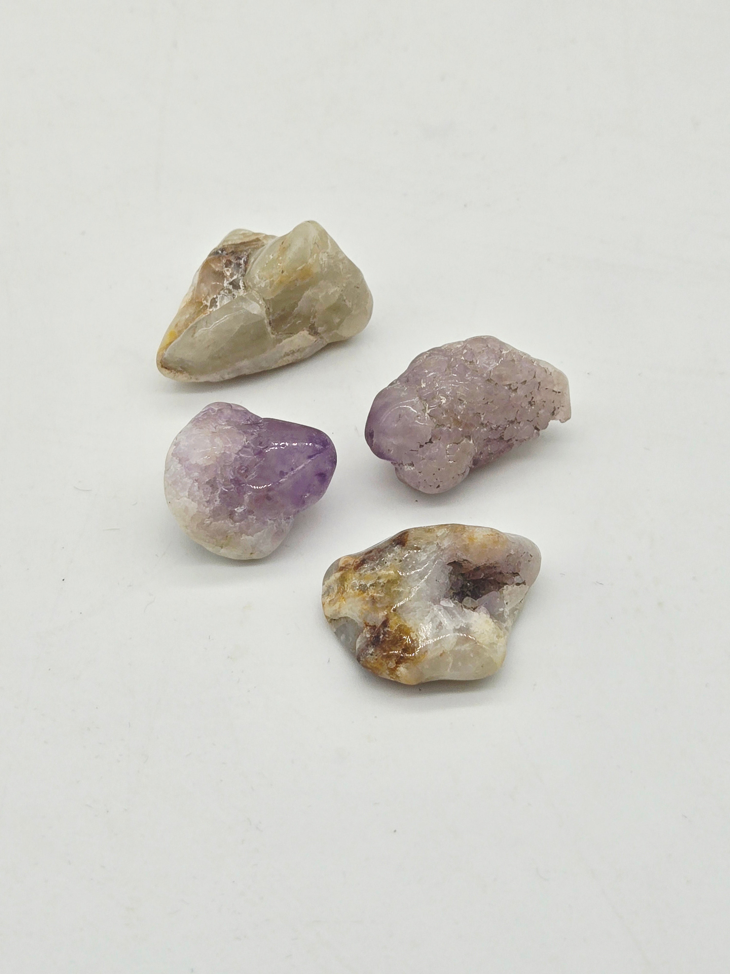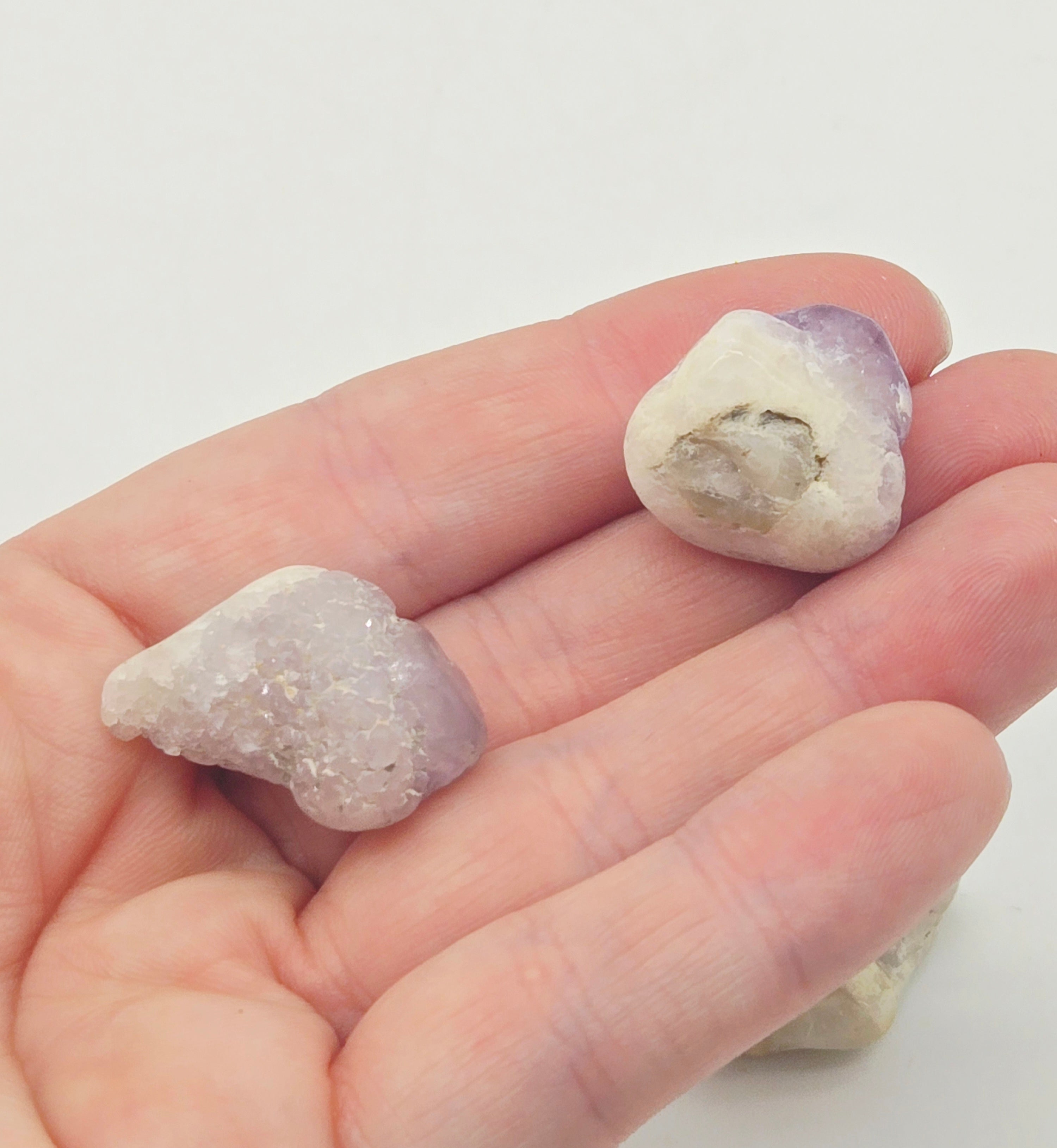 Spirit Quartz is a distinctive variety of amethyst characterized by its unique formation of tiny crystals covering a central point, creating a distinctive sparkle and texture. Metaphysically, Spirit Quartz amplifies spiritual awareness and facilitates connection to higher consciousness. The stone is traditionally associated with promoting harmony, elevating vibrations, and supporting emotional healing. Many use it during meditation to enhance intuition and access deeper spiritual insights. Spirit Quartz is also thought to encourage self-acceptance and inner peace while fostering a sense of unity and wholeness. These polished stones are ideal for meditation practice, energy work, or as meaningful additions to crystal collections.