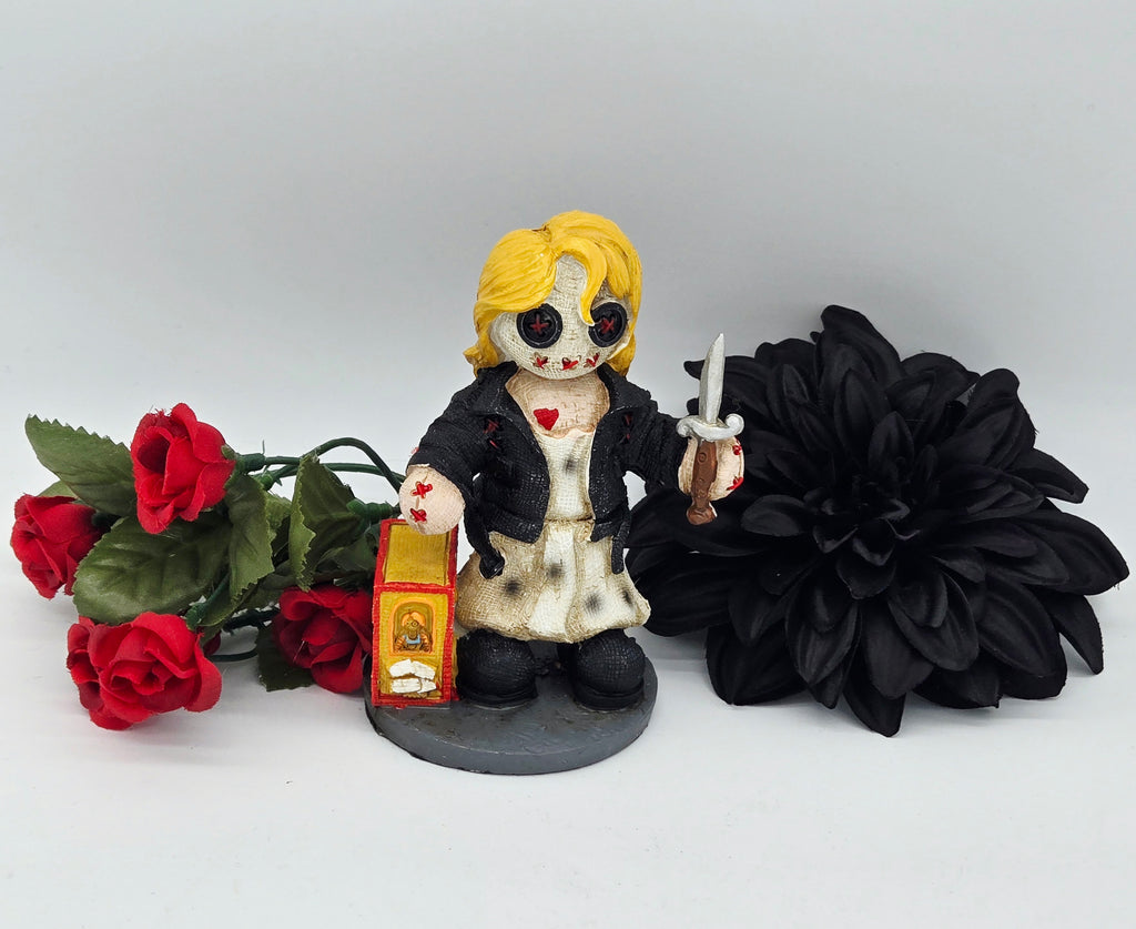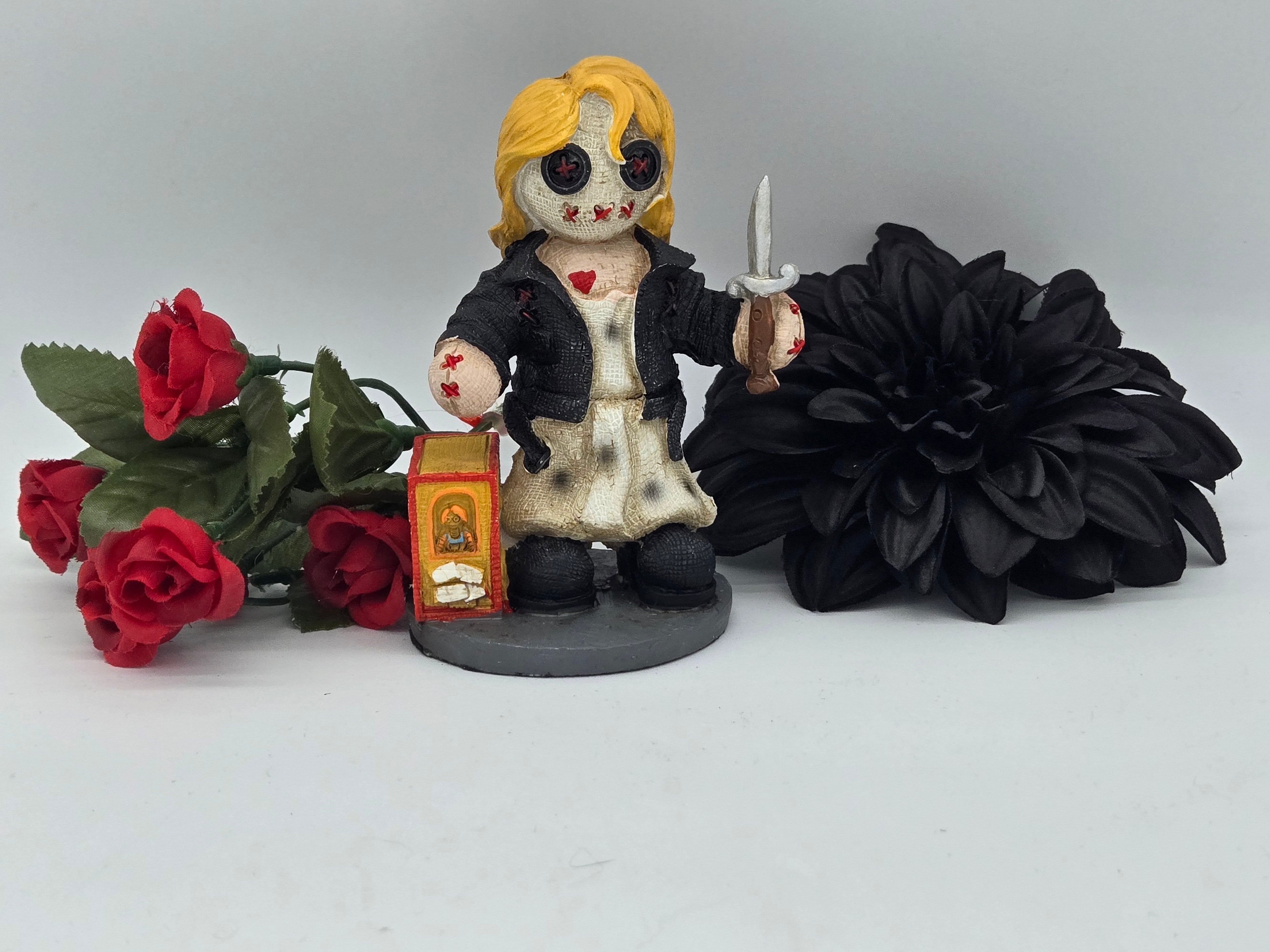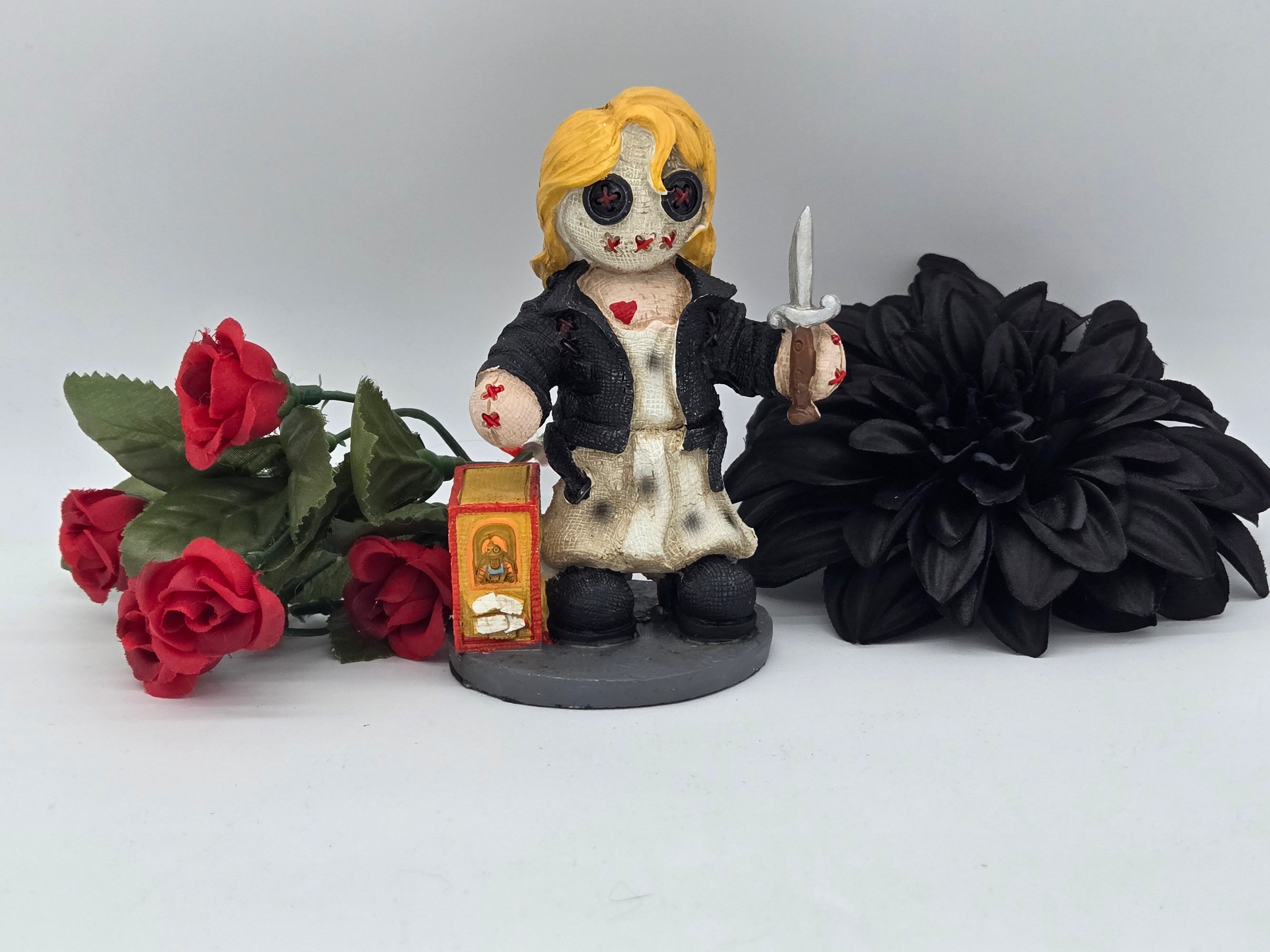 Pinheads Tiff statue captures the iconic aesthetic of classic horror cinema with meticulous craftsmanship. This collectible features the character's signature button eyes and distinctive appearance, making it an essential piece for devoted horror enthusiasts and statue collectors. Expertly sculpted with attention to detail, this statue serves as a striking display piece that commands attention in any collection. Perfect for fans seeking authentic horror memorabilia that celebrates the genre's most memorable characters with Pinheads own unique style.