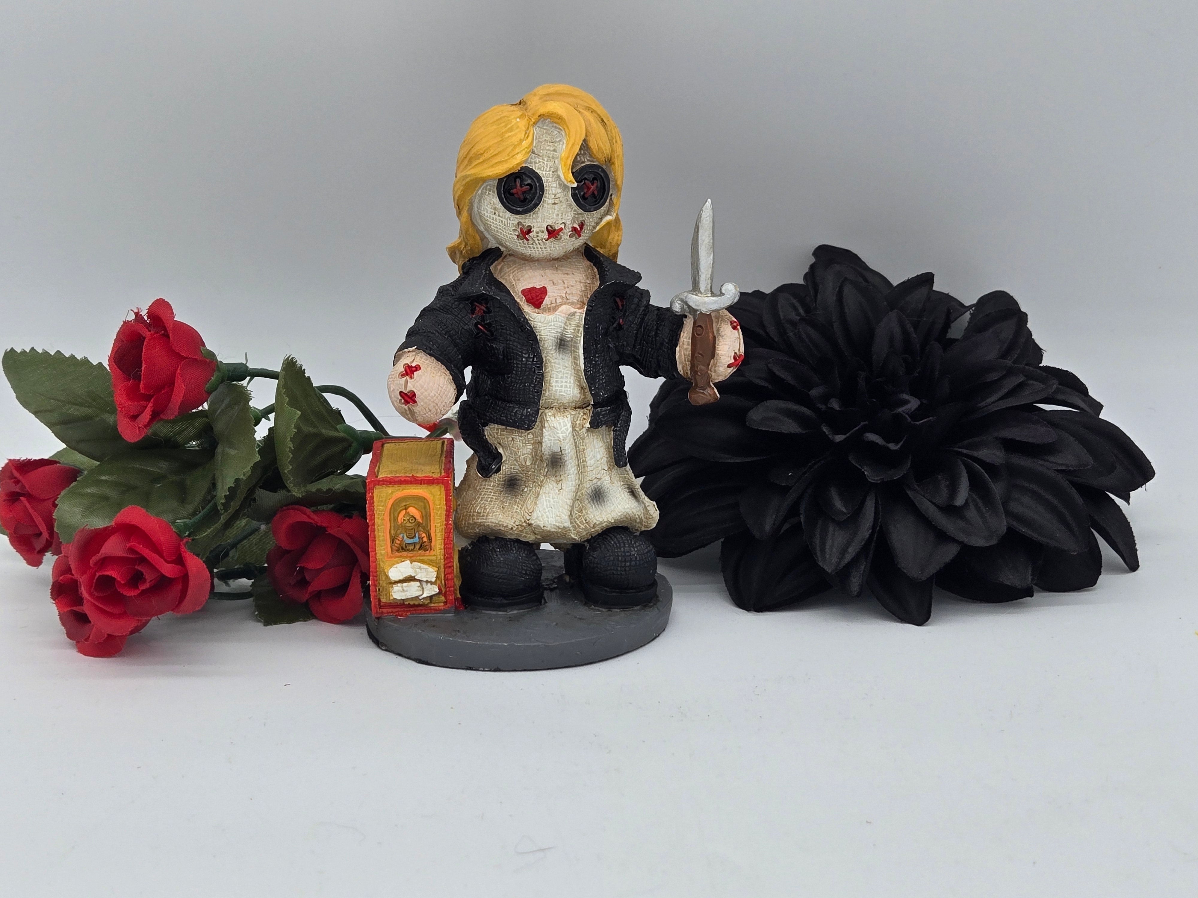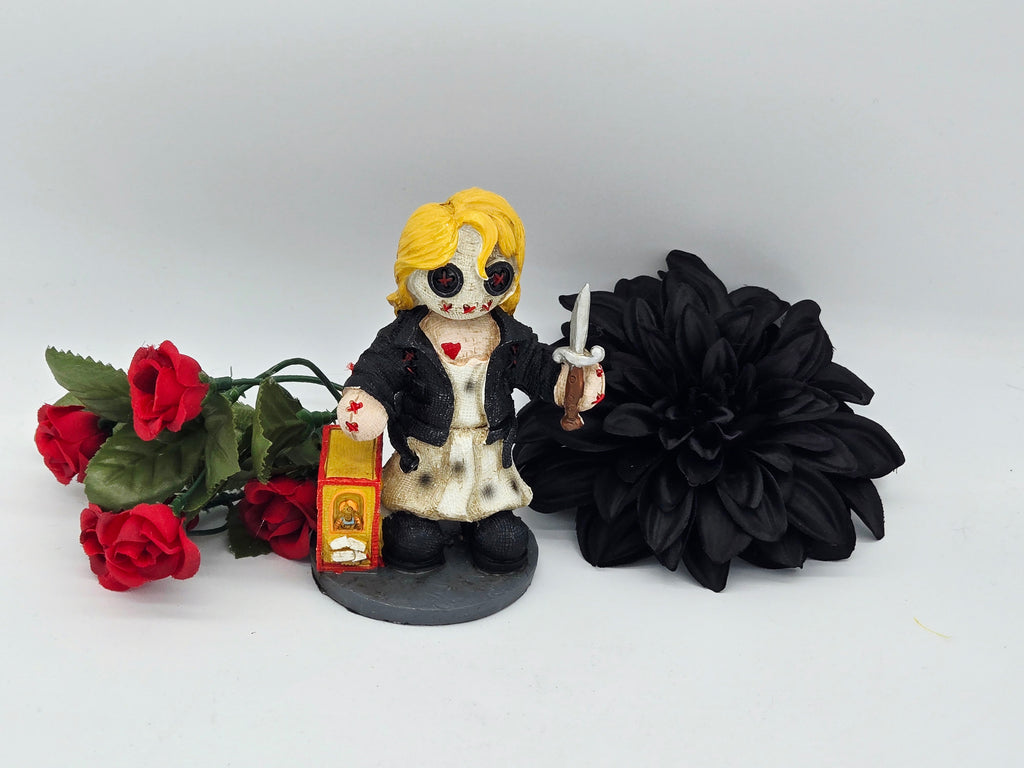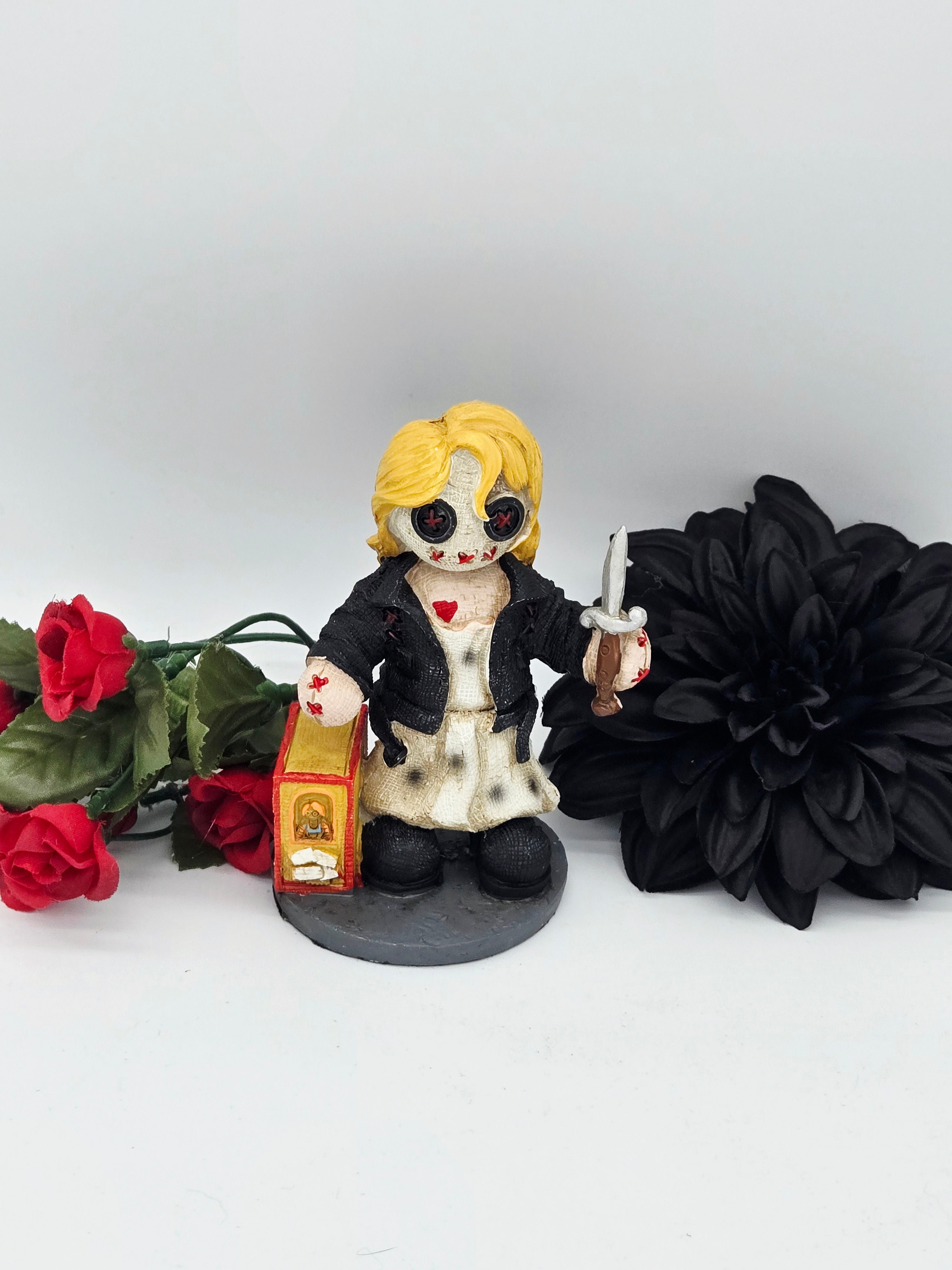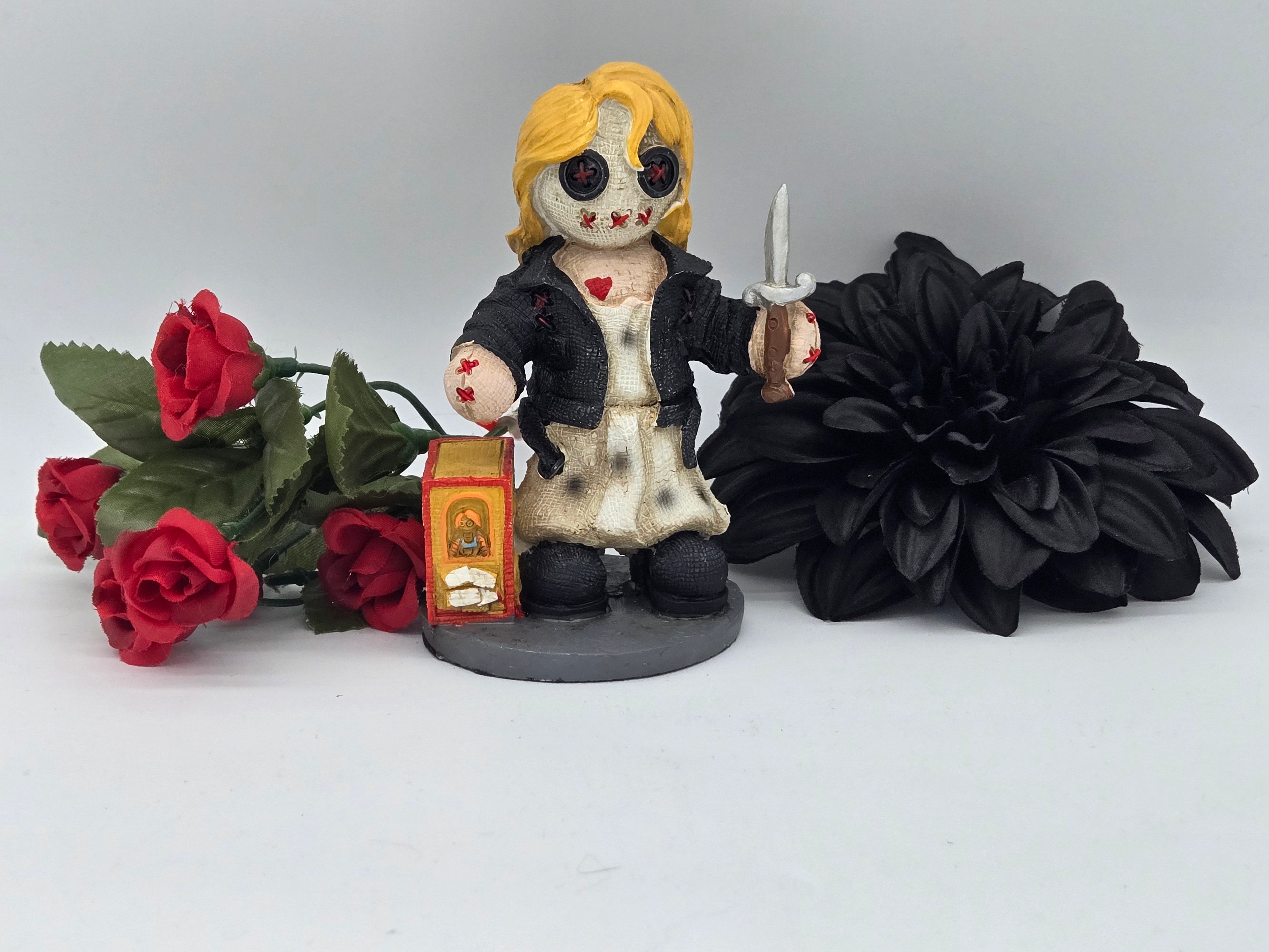 Pinheads Tiff statue captures the iconic aesthetic of classic horror cinema with meticulous craftsmanship. This collectible features the character's signature button eyes and distinctive appearance, making it an essential piece for devoted horror enthusiasts and statue collectors. Expertly sculpted with attention to detail, this statue serves as a striking display piece that commands attention in any collection. Perfect for fans seeking authentic horror memorabilia that celebrates the genre's most memorable characters with Pinheads own unique style.