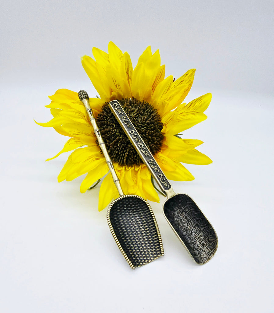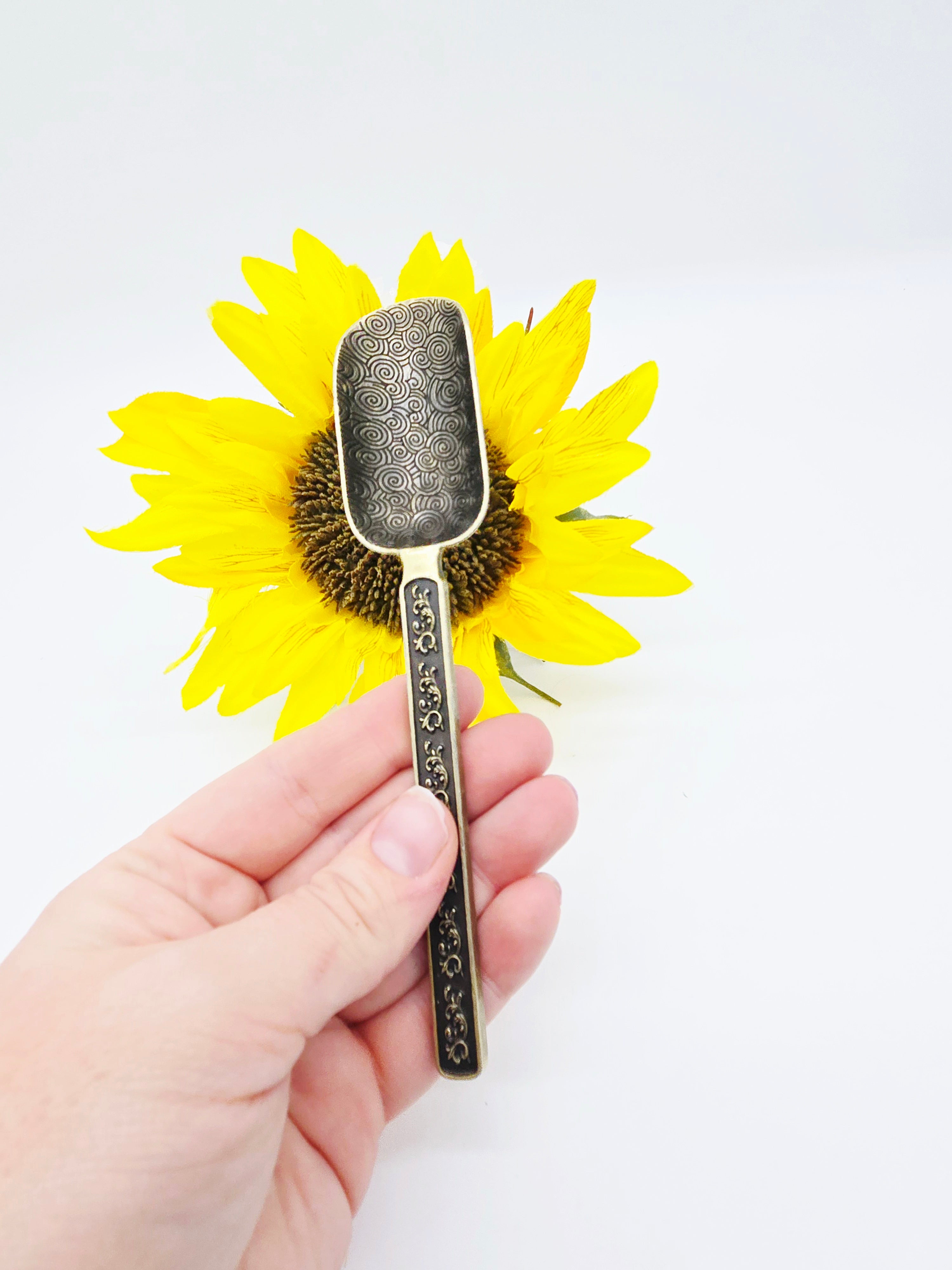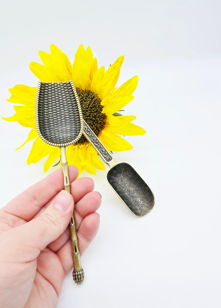 These brass herb spoon's are made from durable brass, and delivers precision with reliability for culinary and botanical applications. The metal construction resists corrosion while maintaining its lustrous finish, making it an enduring addition to any kitchen or apothecary collection. Its ergonomic design facilitates accurate measuring and handling of dried herbs, spices, and specialty ingredients. Whether you're a seasoned herbalist or home cook, this versatile tool combines functionality with timeless appeal, ensuring consistent results across countless uses. These come in several different styles and sizes.