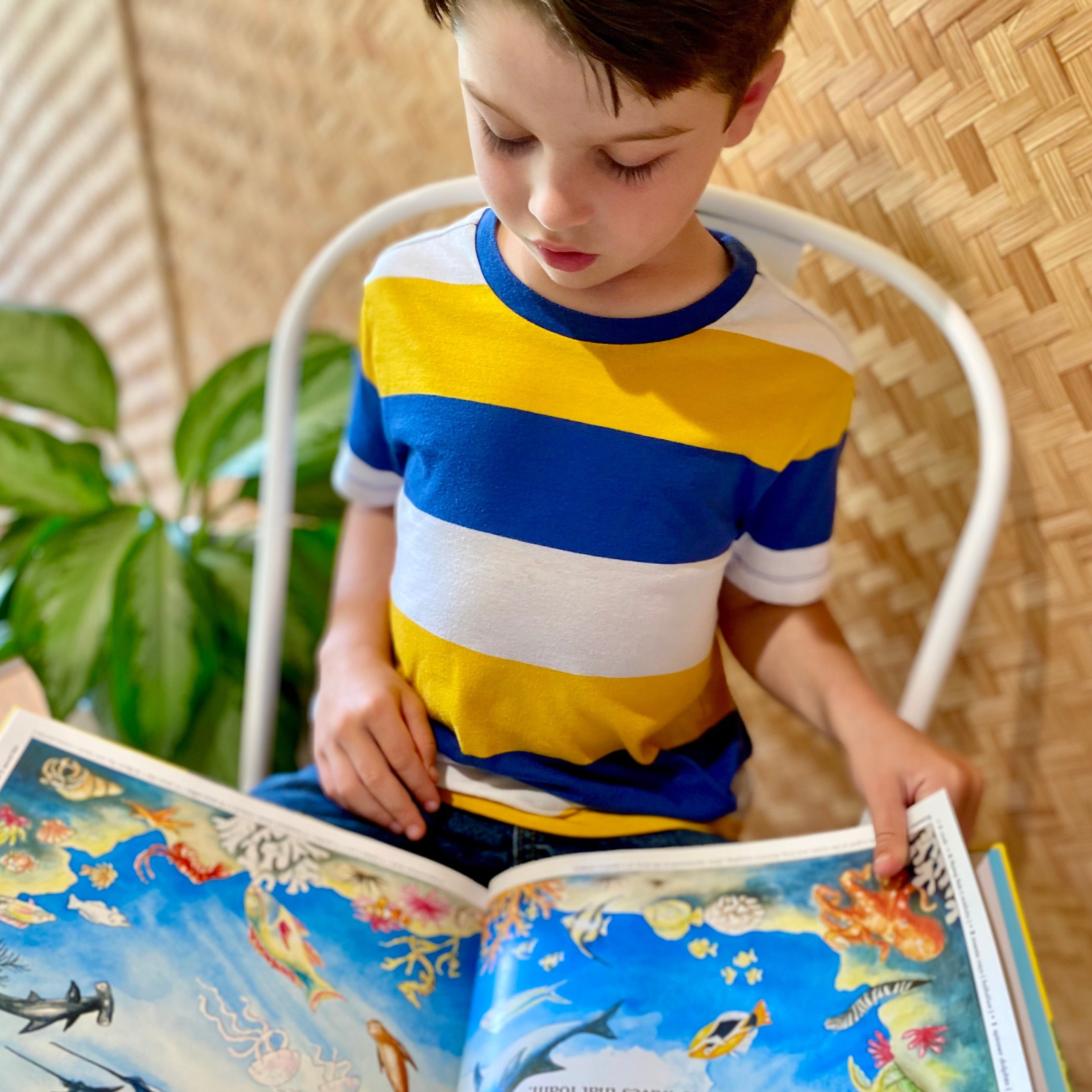 A book of GRATITUDE, with rhythmic verse accompanying a variety of Hawaii scenes. The frame surrounding each richly detailed scene has some cultural or historical facts, and children are invited to FIND and COUNT the blessings of "Our Island Home"!